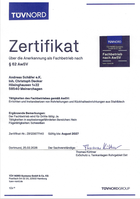 Seit Juni 2002 sind wir und verfügen über die Brandschutzzertifizierung beim bautechnischen Institut in Berlin. Zum 1. Januar 2019 übernahm unser langjähriger Mitarbeiter und Meister Christoph Decker den Betrieb von Andreas Schäfer und führt Ihn nun als Inhaber unter dem Namen Andreas Schäfer e.K. weiter.