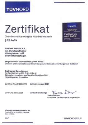 Aus- und Weiterbildung wird bei uns groß geschrieben. Wir beschäftigen ausschließlich gelernte Fachkräfte. 4 Meister, von denen 3 die Ausbildung zum Schweißfachmann absolviert haben und 6 geprüfte Schweißer bilden den Kern.